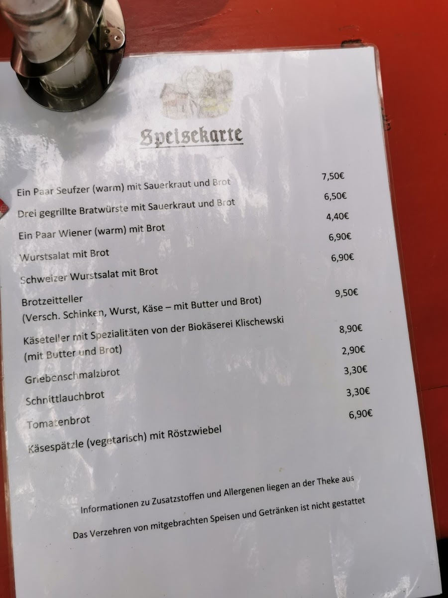 The menu showcases comforting dishes like the hausgemachter Schweinebraten served with hearty Kloß and Sauerkraut for €13.50, or indulge in the trio of grilled bratwursts accompanied by tangy sauerkraut and fresh bread for just €7.30. Vegetarians will relish the Käsespätzle with crispy fried onions for €7.90.